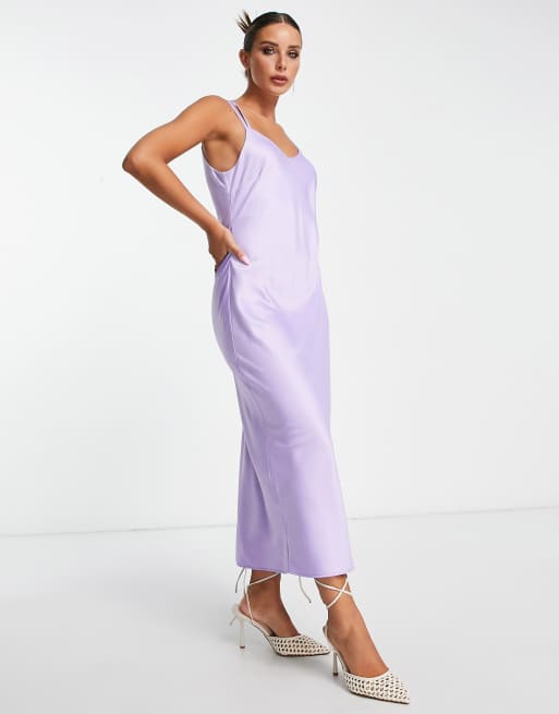 River Island – Ljuslila midiklänning med draperad ringning av satin