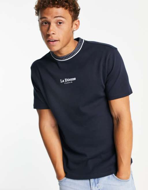 River Island – Marinblå smalt rutmönstrad t-shirt