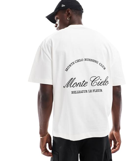 River Island – Naturvit t-shirt i oversize med Monte Cielo Club-tryck
