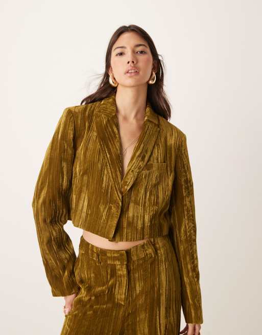 River Island – Olivfärgad, kort kavaj i sammet, del av set