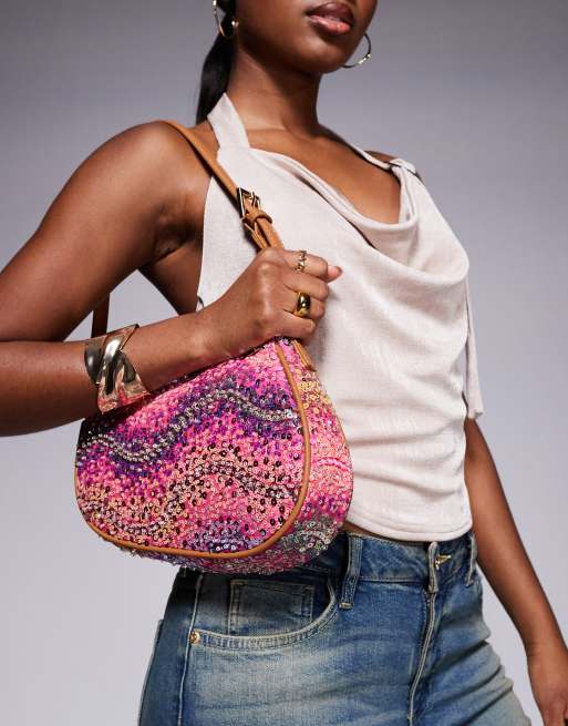 River Island – Rosa sadelväska med paljetter