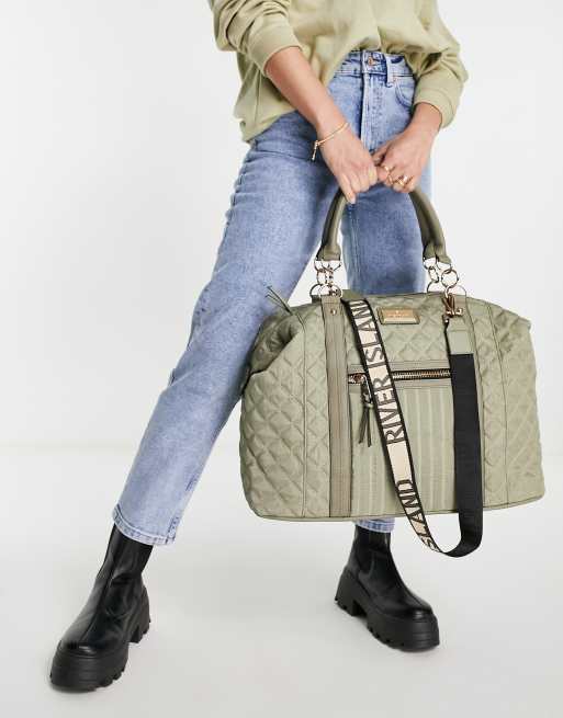 River Island – Salviagrön kviltad weekendväska i satin