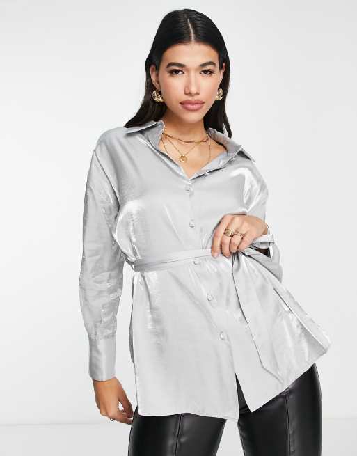 River Island – Silverfärgad skjorta med skärp