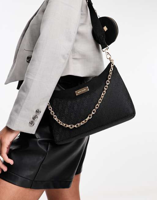 River Island – Svart axelremsväska i jacquard med monogrammönster
