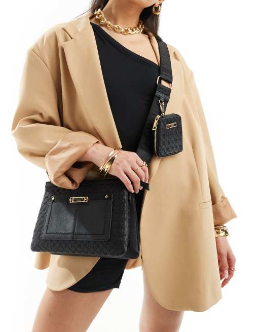 River Island – Svart crossbodyväska med präglat monogrammönster