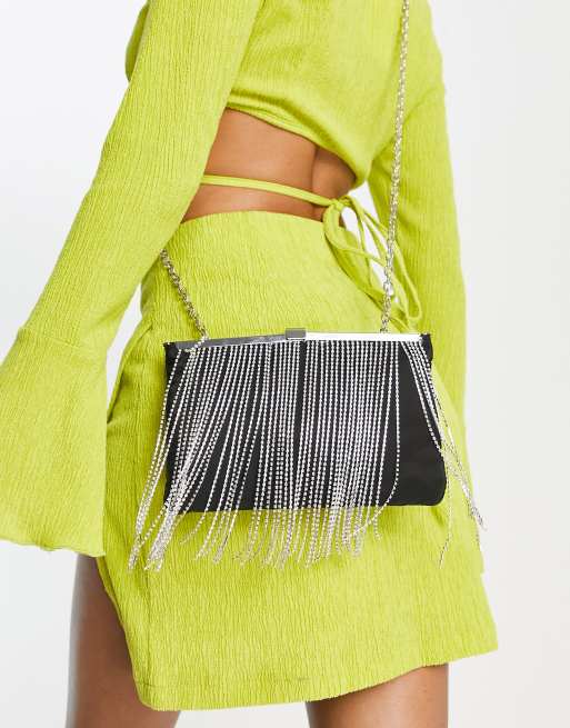 River Island – Svart crossbodyväska med strassfransar