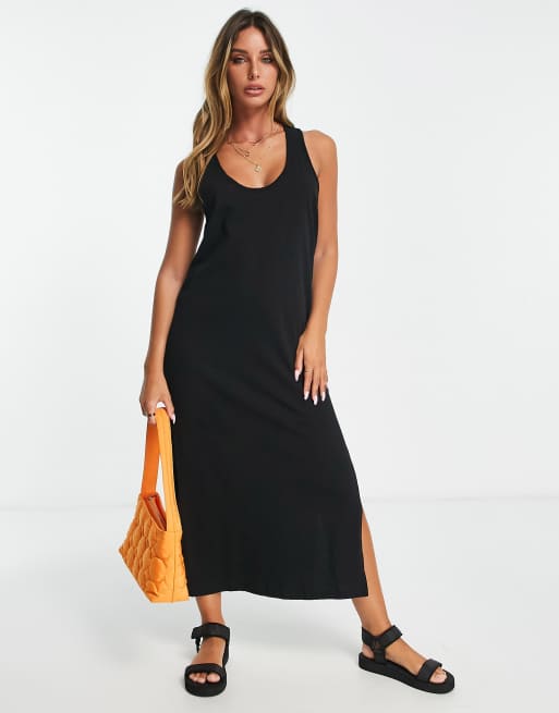 River Island – Svart t-shirtklänning i midilängd