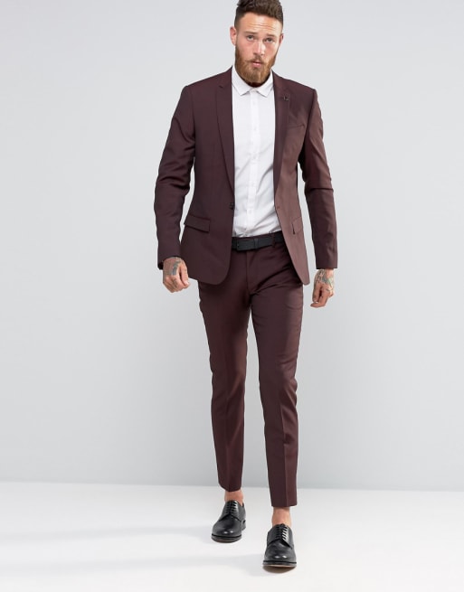 River Island – Vinröd kostym i ullblandning med smal passform