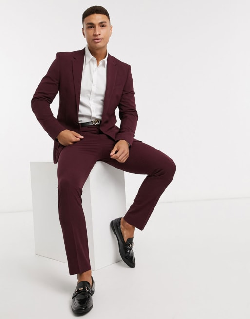 River Island – Vinröd kostym med smal passform