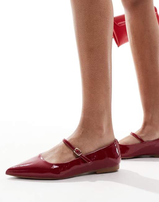 River Island – Vinröda, platta ballerinaskor med spetsig tå