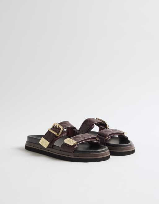 River Island – Vinröda, quiltade sandaler med dubbla remmar och formad sula