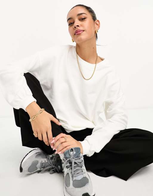 River Island – Vit, avslappnad tröja med rund halsringning