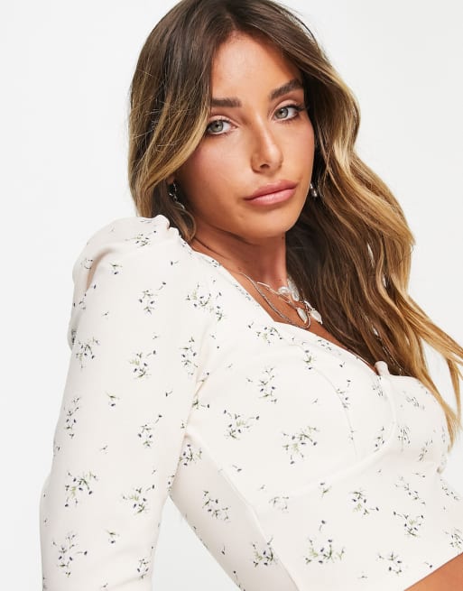 River Island – Vitt blommigt set med vida shorts och topp