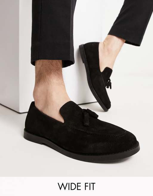 River Island – Wide Fit – Svarta loafers med tofsar