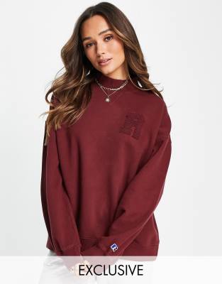 Russell Athletic – Vinröd, tvättad sweatshirt i borstad fleece med rund halsringning