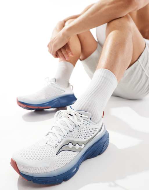 Saucony – Guide 17 – Vita och marinblå löparskor med strukturerad dämpning
