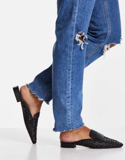 schuh – Latoya – Svarta, vävda, platta skor med öppen häl
