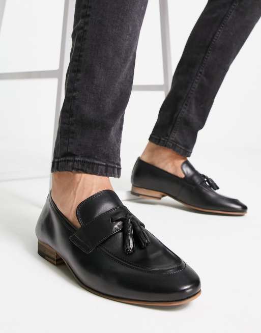 schuh – Ryan – Svarta loafers i läder med tofsar