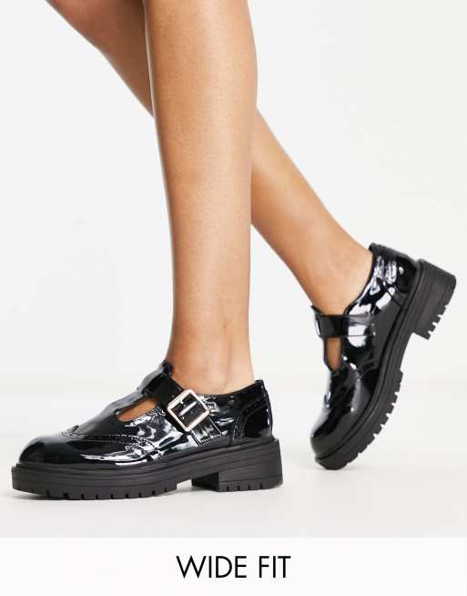 Schuh Wide Fit – Luca – Svarta, lackade, grova skor
