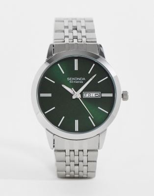 Sekonda – Silverfärgad armbandsklocka för män med grön urtavla