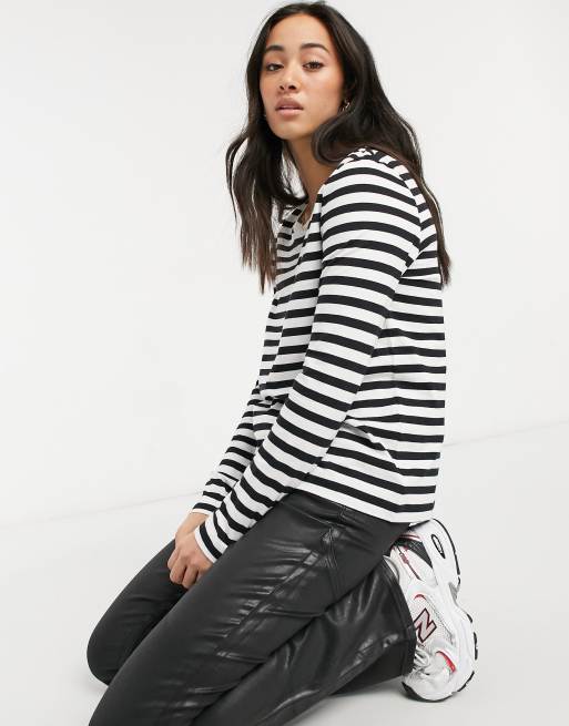 Selected Femme - Randig långärmad T-shirt i bomull - MULTI