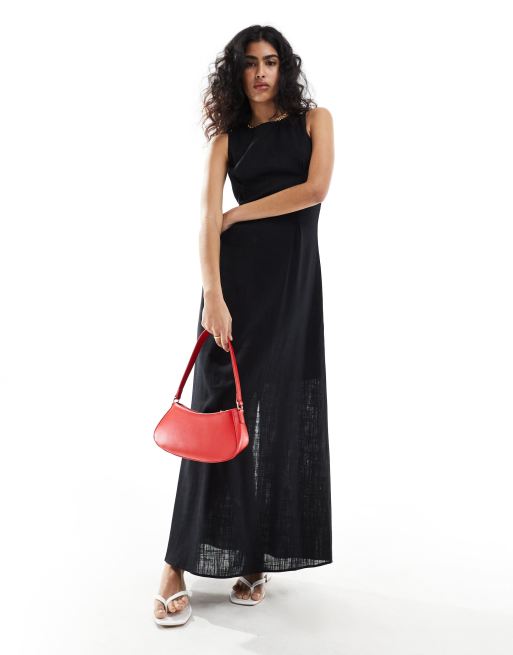 Selected Femme – Svart maxiklänning i linnemix