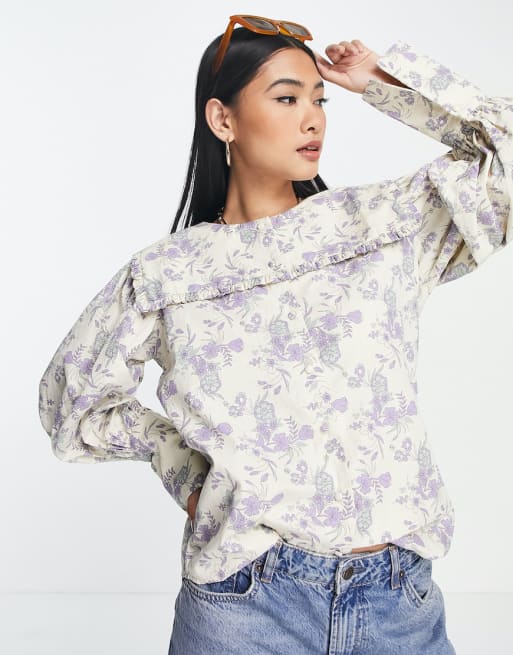 Selected Femme – Syrénlila, blommigt set med skjorta med stor krage och solhatt