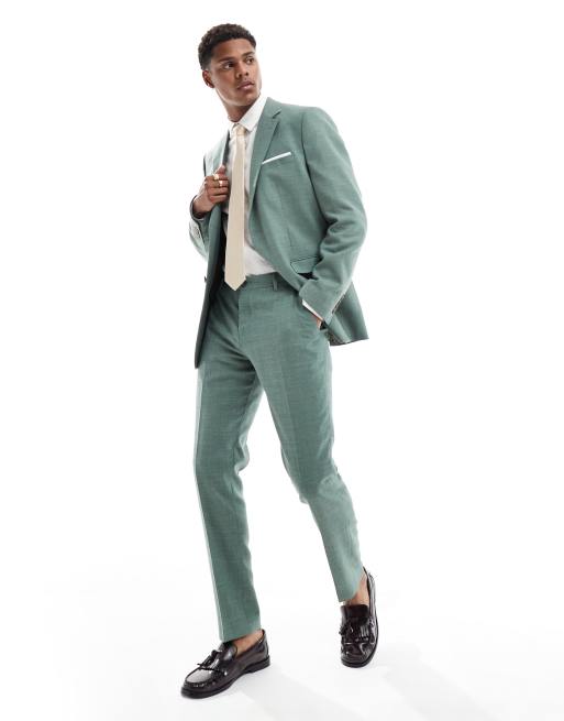 Selected – Gröna, smala kostymbyxor i linnemix, del av kostym