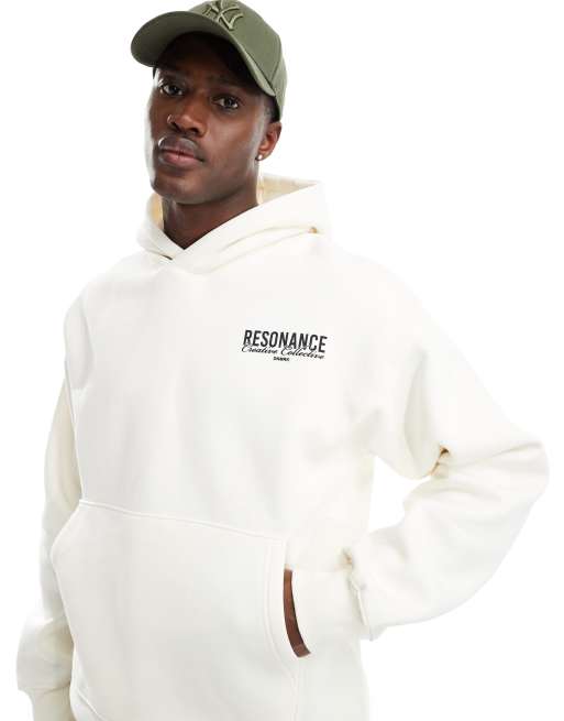 Selected Homme – Gräddvit hoodie i oversize med text baktill