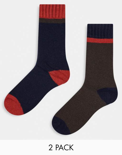 Selected Homme – Marinblå och röda strumpor i ylle, 2-pack