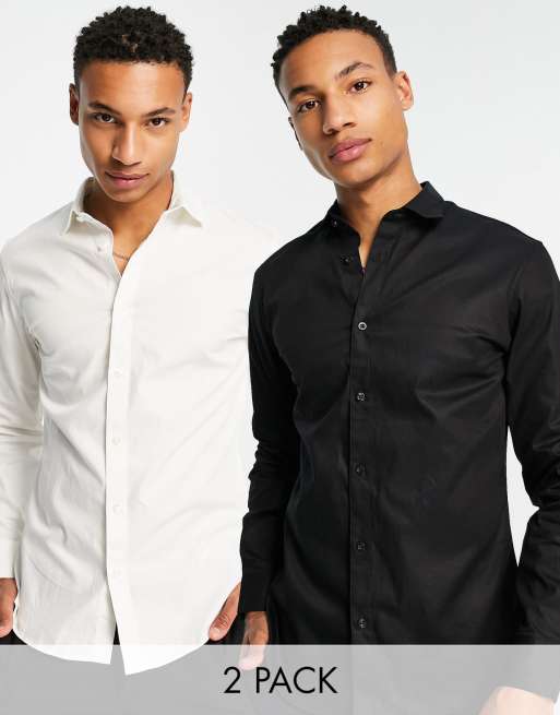 Selected Homme – Vit och svart poplinskjorta med smal passform, 2-pack