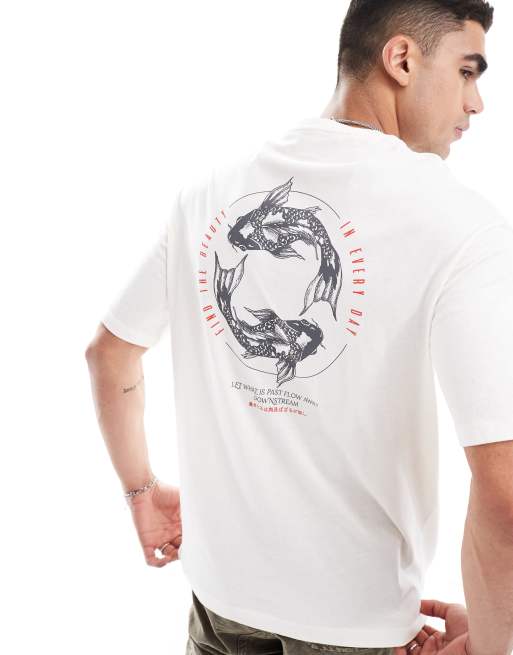 Selected Homme – Vit t-shirt i oversize med koitryck baktill
