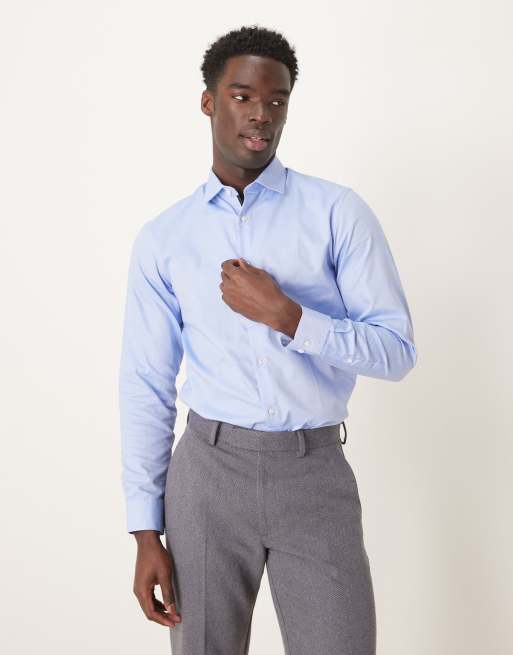 Selected – Ljusblå, lättstruken finskjorta med smal passform
