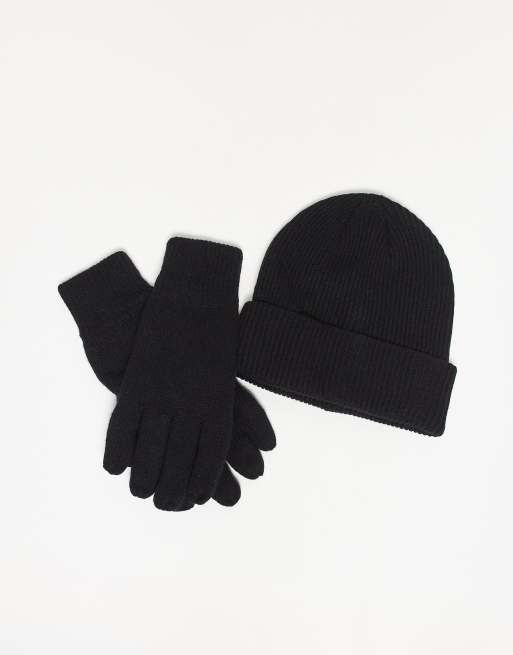 Selected – Svart gåvoset i yllemix med mössa och handskar