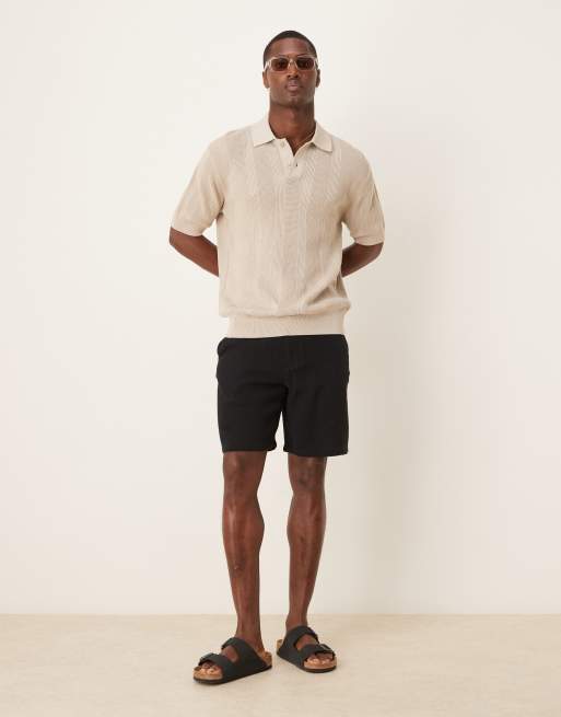 Selected – Svarta, texturerade shorts i 100% bomull