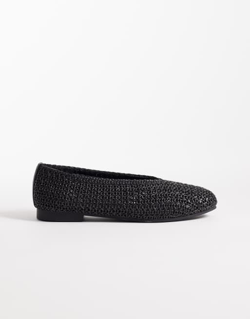 SEQWL – Svarta, vävda ballerinaskor med bred passform