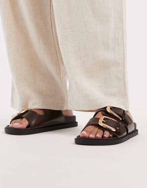 SEQWL Wide Fit – Bruna, platta sandaler med dubbla spännen