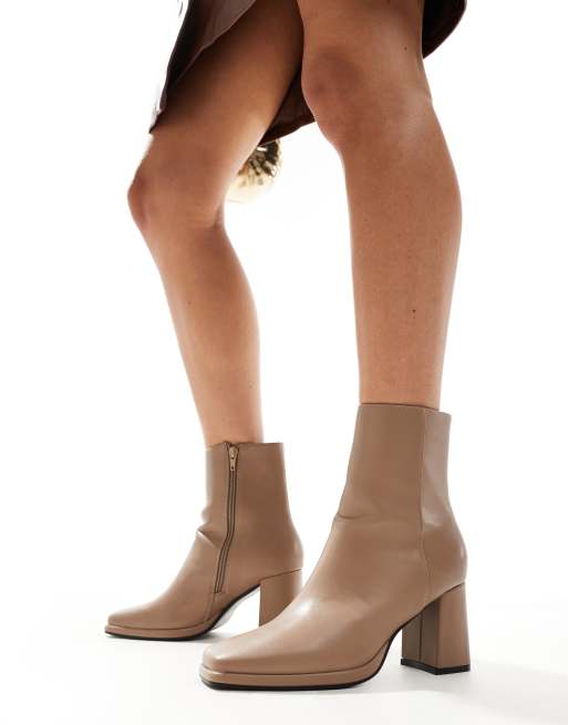 SEQWL – Brungrå ankelboots med fyrkantig tå och blockklackar