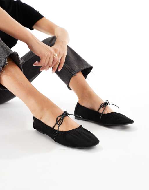 SEQWL – Iris – Svarta, platta ballerinaskor med knytning och rysch