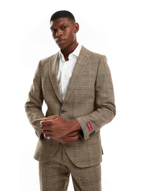 Shelby and Sons – Brun, dubbelknäppt kavaj i tweed med smal passform och rutigt mönster, del av set