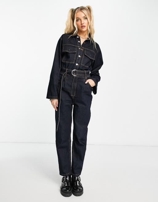 Signature 8 – Mörkblå overall med skärp och vida ärmar av denim