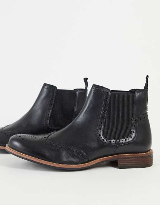 Silver Street – Svarta chelseaboots i läder med broguedesign