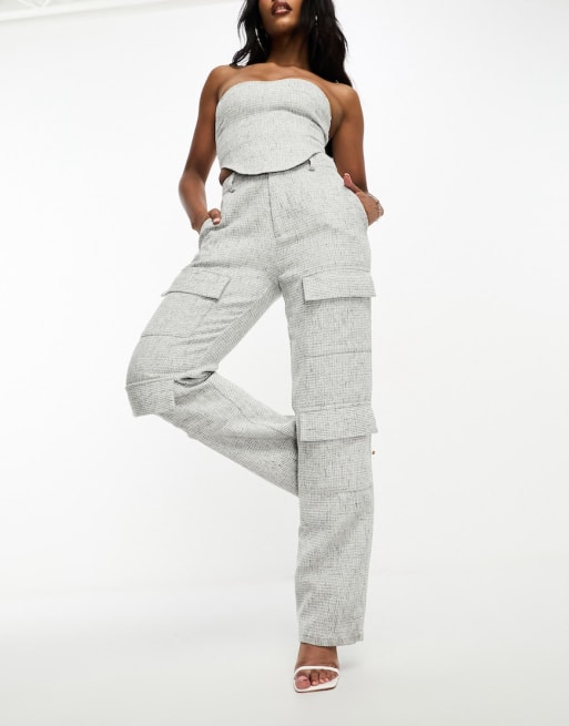 Simmi – Silverfärgat set i bouclé med korsett-topp och byxor