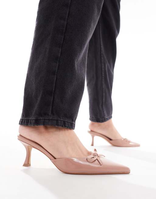 Simmi London – Ailla – Rosa mules med spetsig tå, taxklack och rosett