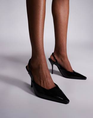 Simmi London – Darcia – Svarta klackskor med spetsig tå, bred passform och hälrem