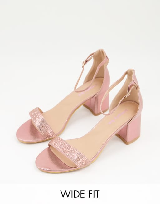 Simply Be Wide Fit – Roxie – Rosé-guldfärgad sandaler med blockklack