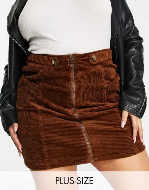 Simply Be – Brun minikjol i manchester med dragkedja framtill