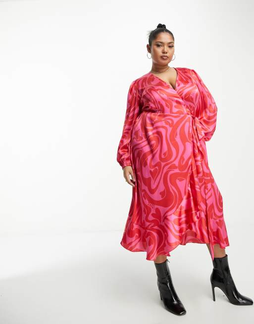 Simply Be – Rosa, virvelmönstrad omlottklänning i satin