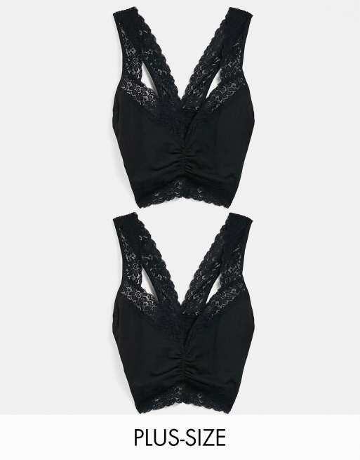 Simply Be – Svart bralette med spetskanter i 2-pack