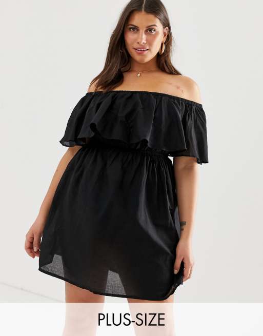 Simply Be – Svart strandklänning med bardotringning
